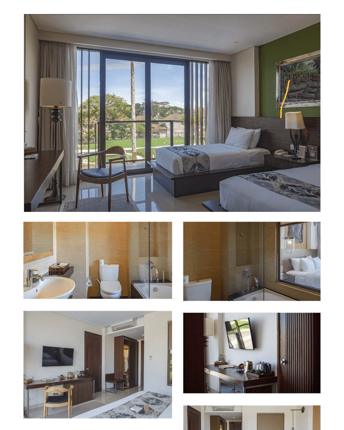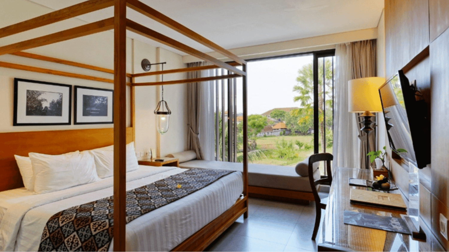 Deluxe Rooms represents contemporary comfort overlooks the lush paddies and pool, bespoke king-size and twin-size beds, completed with modern amenities.