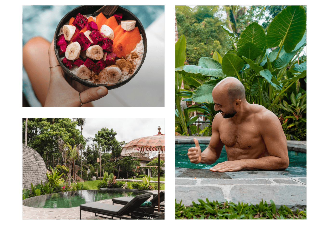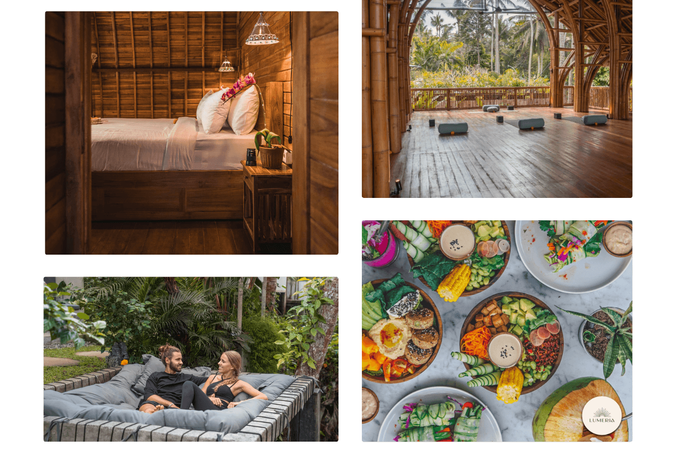 You’ll stay at the Lumeria Hotel in Ubud, Bali, a stunning retreat center nestled in the heart of Bali’s lush jungles and rice terraces. The serene environment combines luxury with holistic wellness facilities, offering a perfect space for relaxation and renewal.