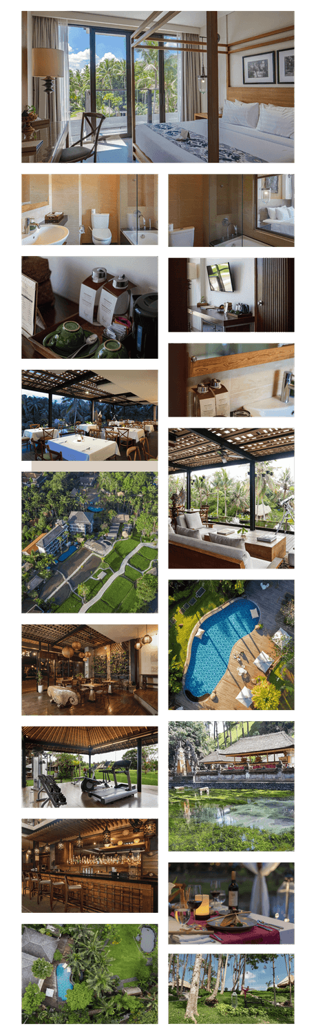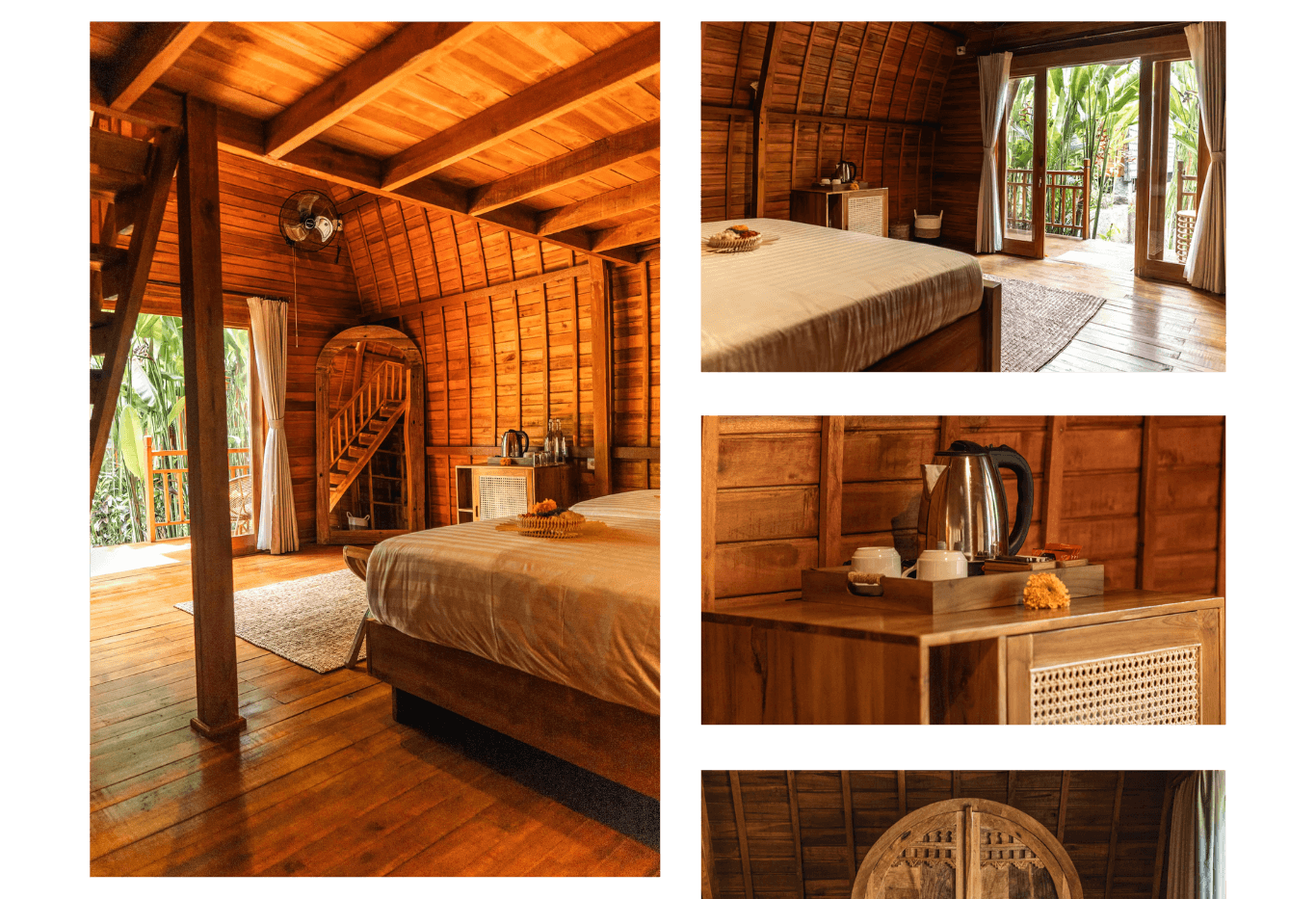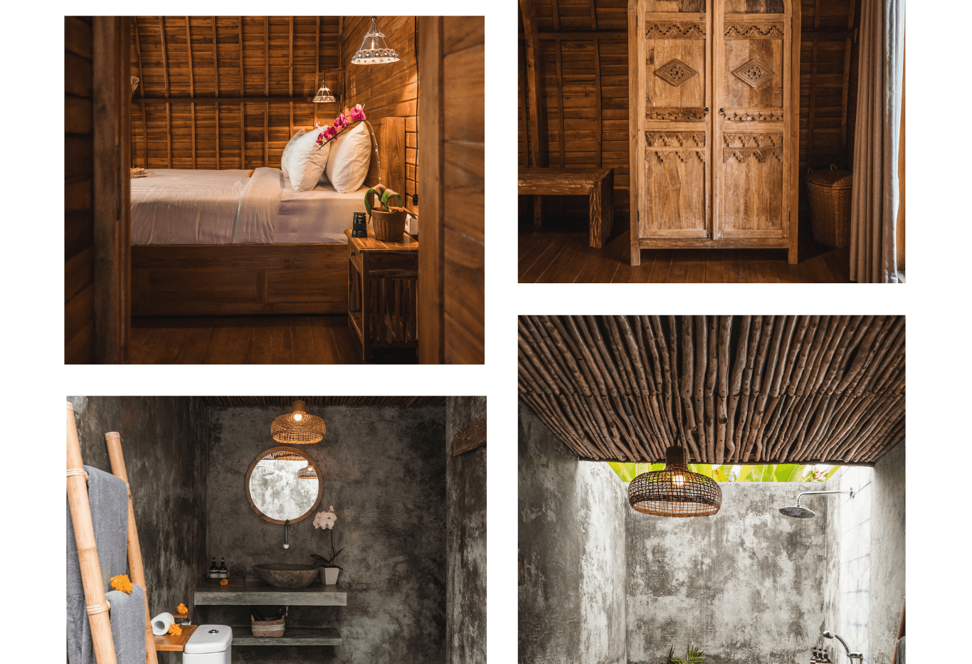 Made in traditional “lumbung” style, the wooden bungalows are built in alignment with nature, Balinese culture and locally-sourced products found only in Indonesia. Step into natural living surrounded by beautiful gardens, sounds of birds singing and fresh jungle air.