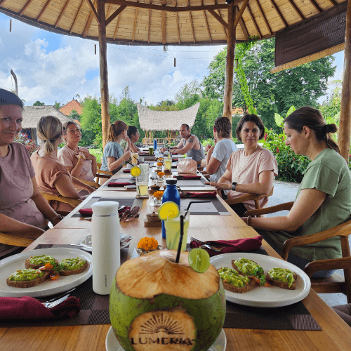This is the spiritual heart of your retreat. Take part in a Balinese purification led by your retreat leader and the village’s spiritual guide, who carry the wisdom of their ancestral practice and authentic healing held only within local tradition. It opens space for healing, connection, and a sense of calm that follows you long after the ceremony ends.